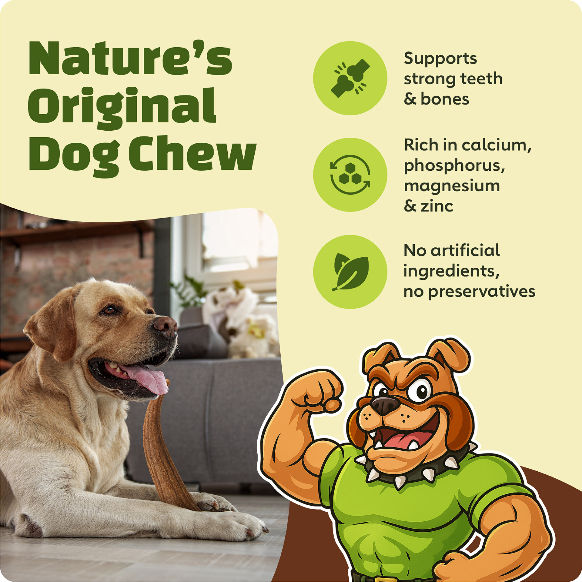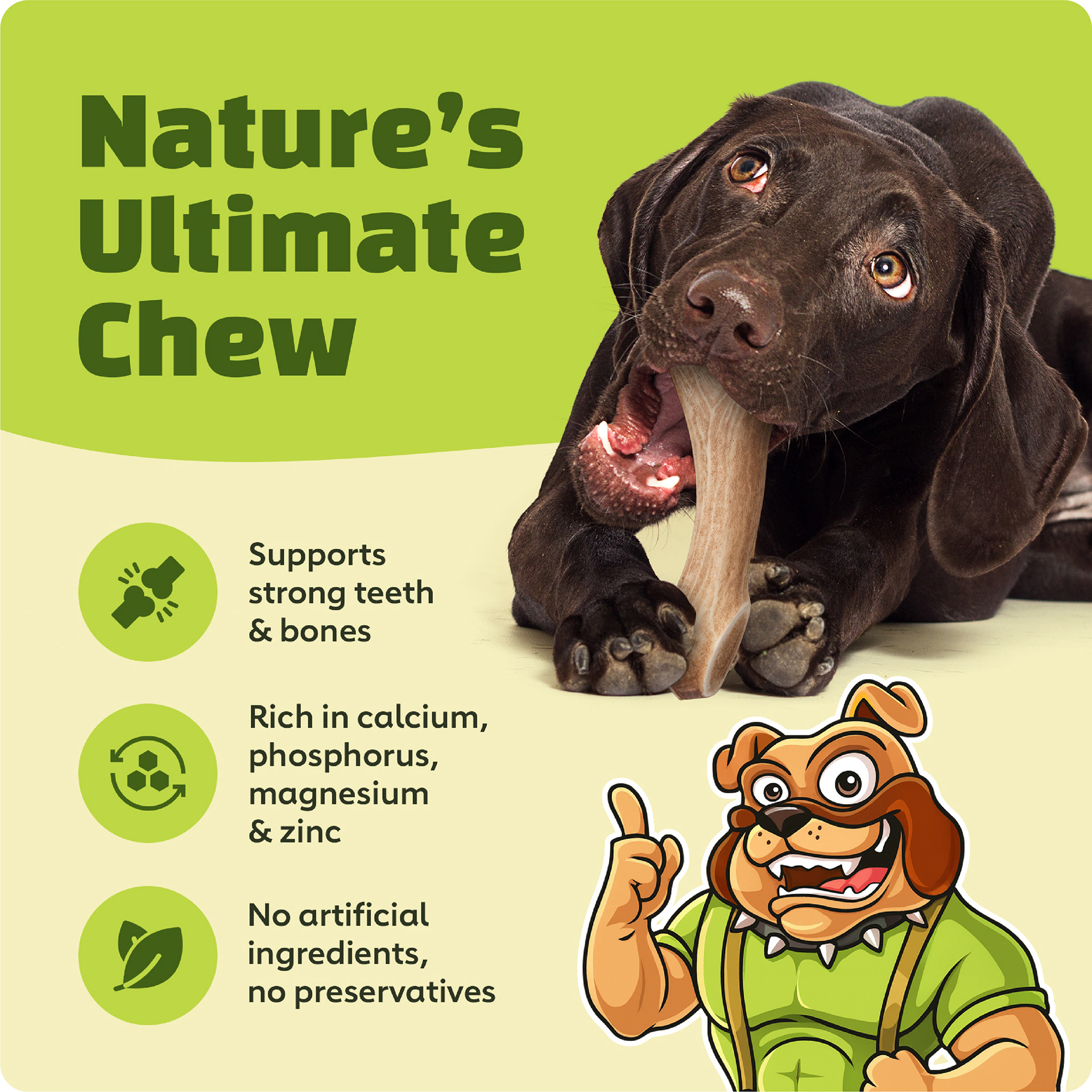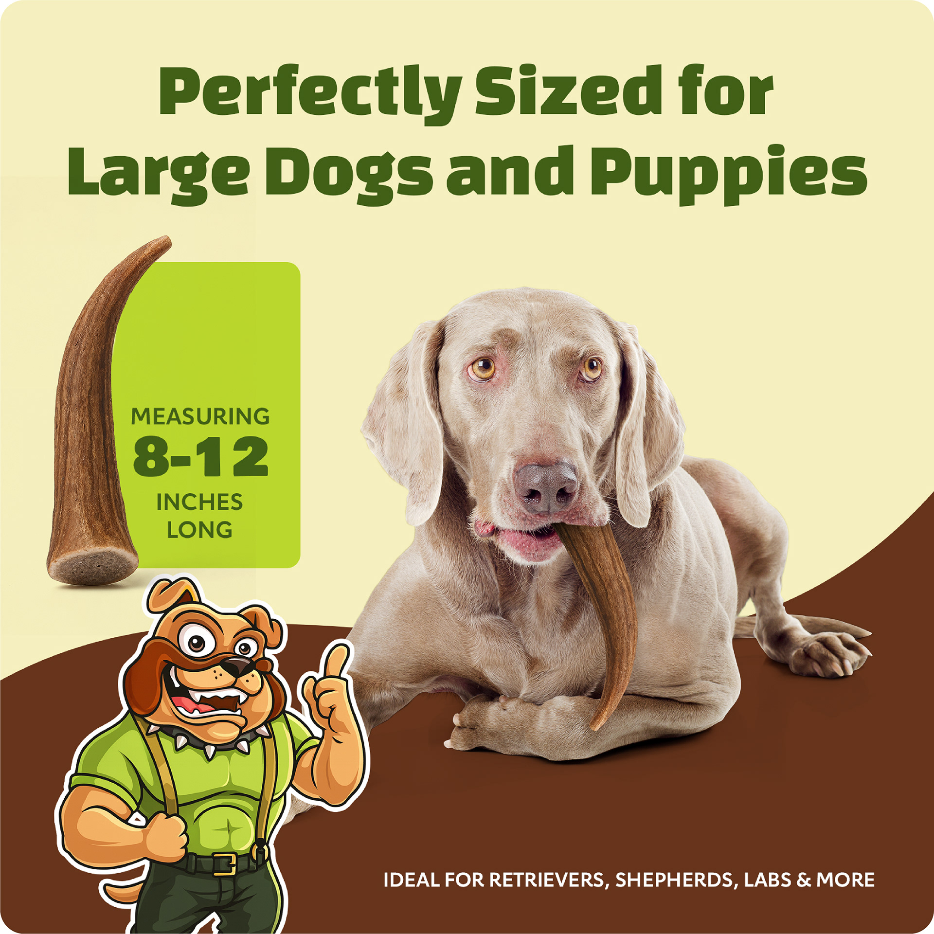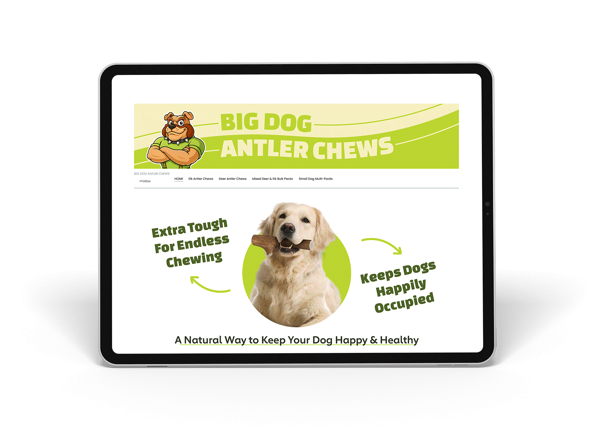 The core strategy was to move away from one-off designs and instead create a flexible brand system that could scale across the full catalog. Big Dog Antler Chews already had a recognizable mascot, but it was underutilized and inconsistently applied. The opportunity was to turn that mascot into a central visual anchor while building a cohesive design language around it.