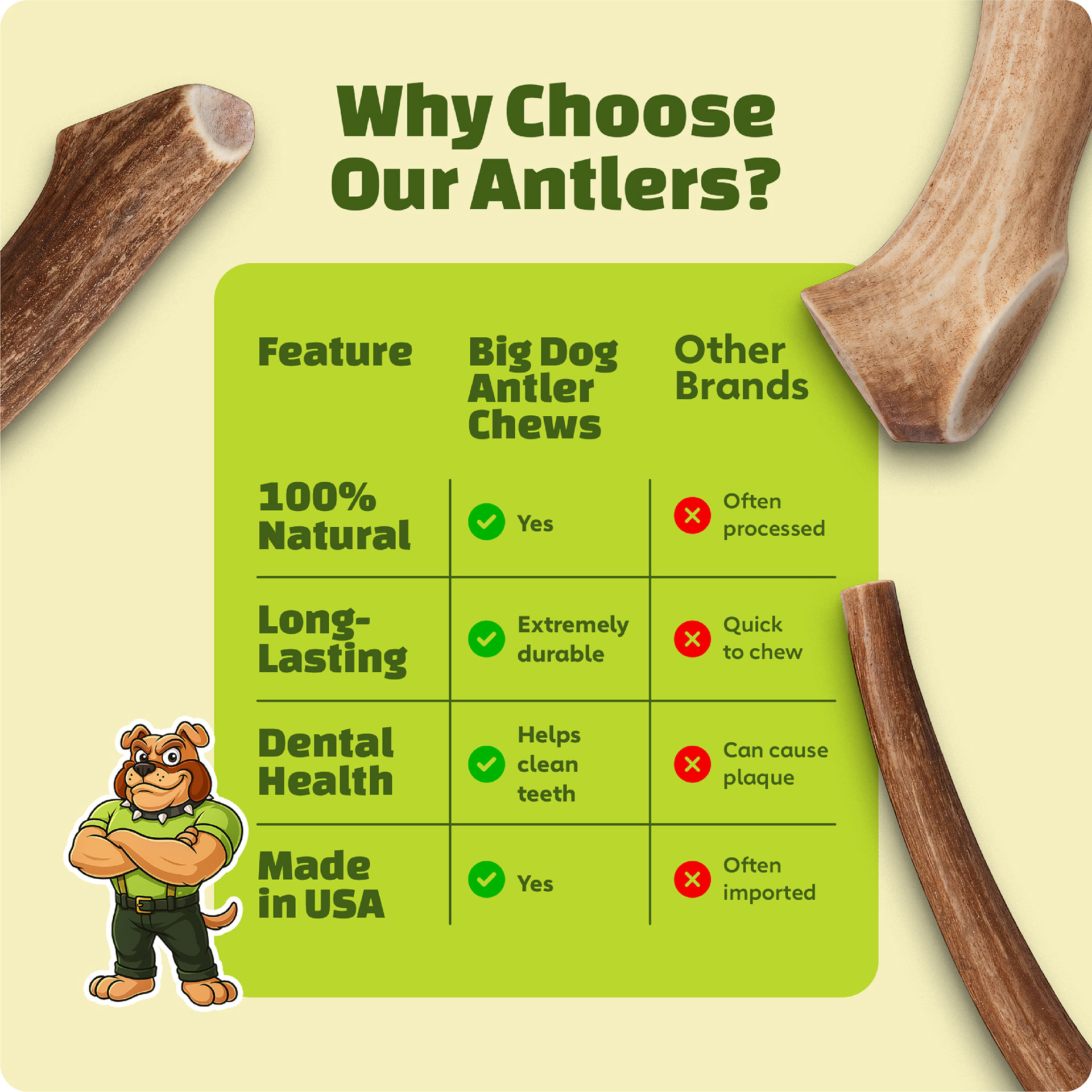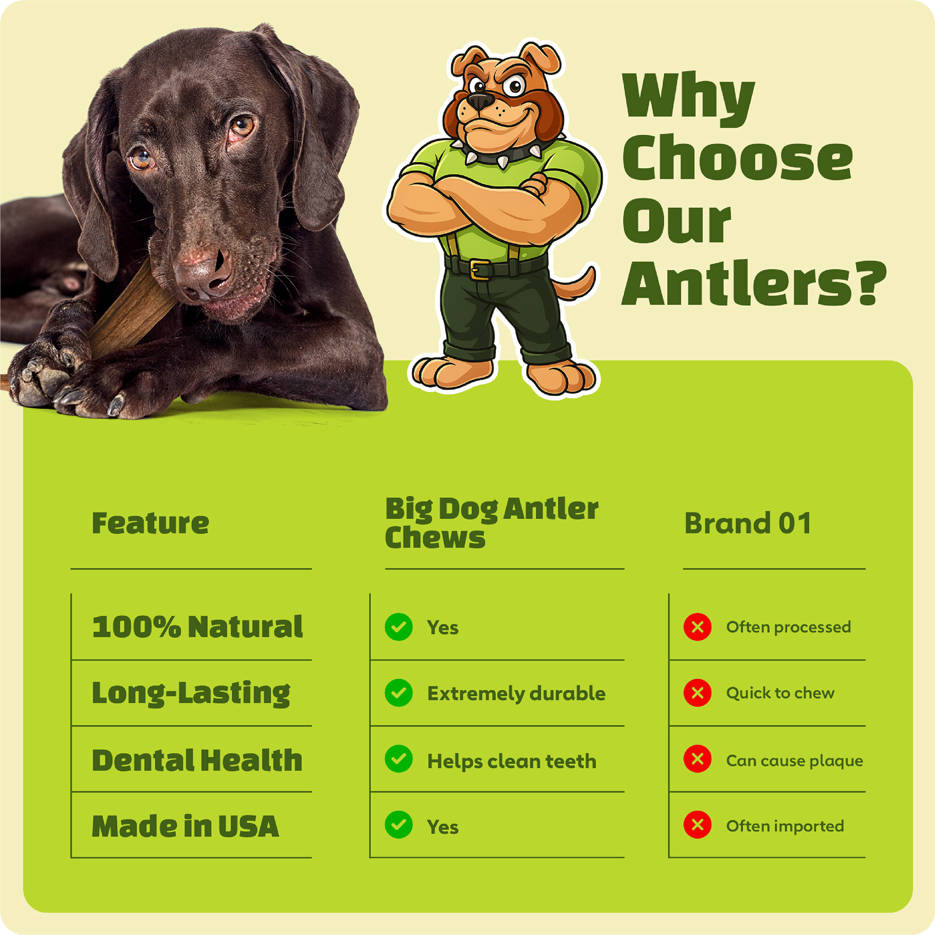 The final result was a cohesive, scalable Amazon catalog that feels modern, trustworthy, and intentionally designed. Big Dog Antler Chews now presents as a unified brand rather than a collection of individual products, making it easier for customers to navigate, compare, and buy with confidence.